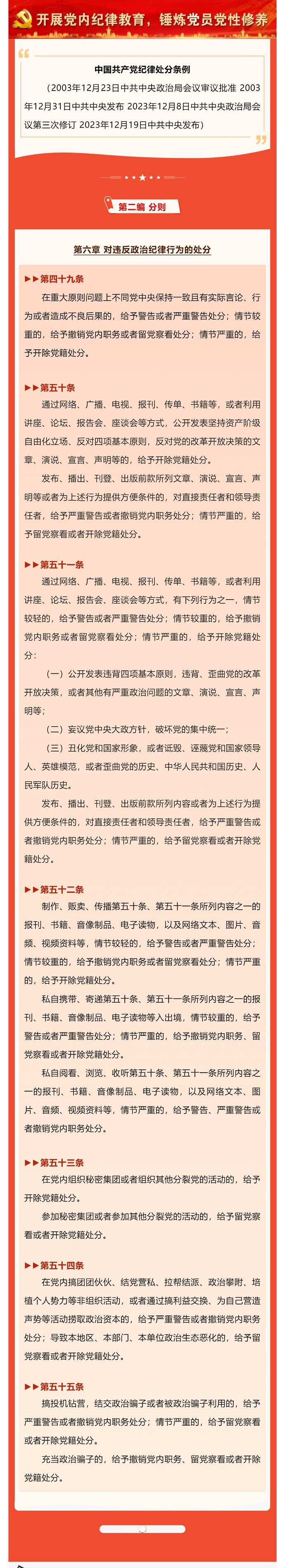 一起學(xué)《條例》丨《中國共產(chǎn)黨紀(jì)律處分條例》⑥