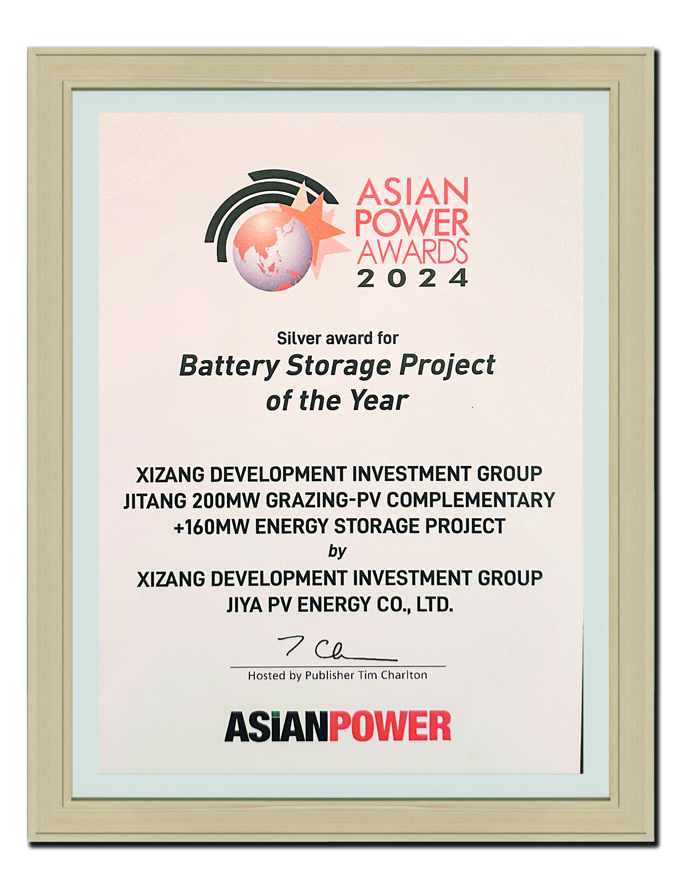 2024年亞太區(qū)年度最佳電池儲能項目銀獎