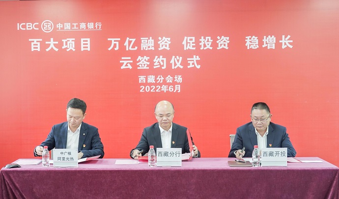為深入貫徹黨中央“疫情要防住、經濟要穩(wěn)住、發(fā)展要安全”重要決策部署,提升助力經濟穩(wěn)增長服務水平,6月9日下午,中國工商銀行總行舉行了“百大項目 萬億融資 促投資 穩(wěn)增長”云簽約儀式。西藏開發(fā)投資集團有限公司作為西藏自治區(qū)簽約重點客戶之一,在中國工商銀行西藏分會場簽訂清潔能源項目在“十四五”期間提供不超過100億元等值人民幣意向性融資額度合作協(xié)議。