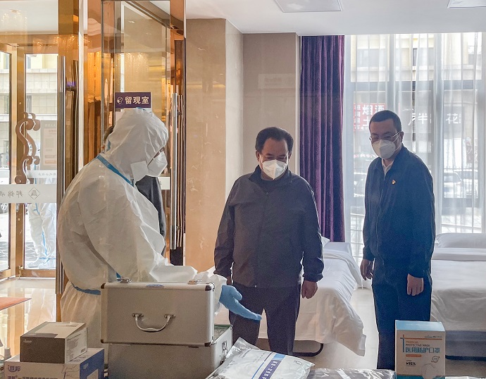 多吉次珠一行詳細(xì)察看了西藏開(kāi)投邦錦花園酒店出入登記點(diǎn)、留觀室、疫情防控物資儲(chǔ)備室、全日制餐廳等區(qū)域,聽(tīng)取了酒店疫情防控工作匯報(bào)。聽(tīng)取匯報(bào)后,多吉次珠對(duì)酒店全力做好一線抗疫醫(yī)務(wù)工作者和公安民警后勤保障工作給予高度評(píng)價(jià)。他指出,西藏開(kāi)投邦錦花園酒店站位高、有擔(dān)當(dāng),主動(dòng)承擔(dān)抗疫一線干部職工保障工作重要任務(wù),充分彰顯了國(guó)企擔(dān)當(dāng)、國(guó)企速度、國(guó)企精神,有力發(fā)揮了國(guó)資國(guó)企的“頂梁柱”作用。