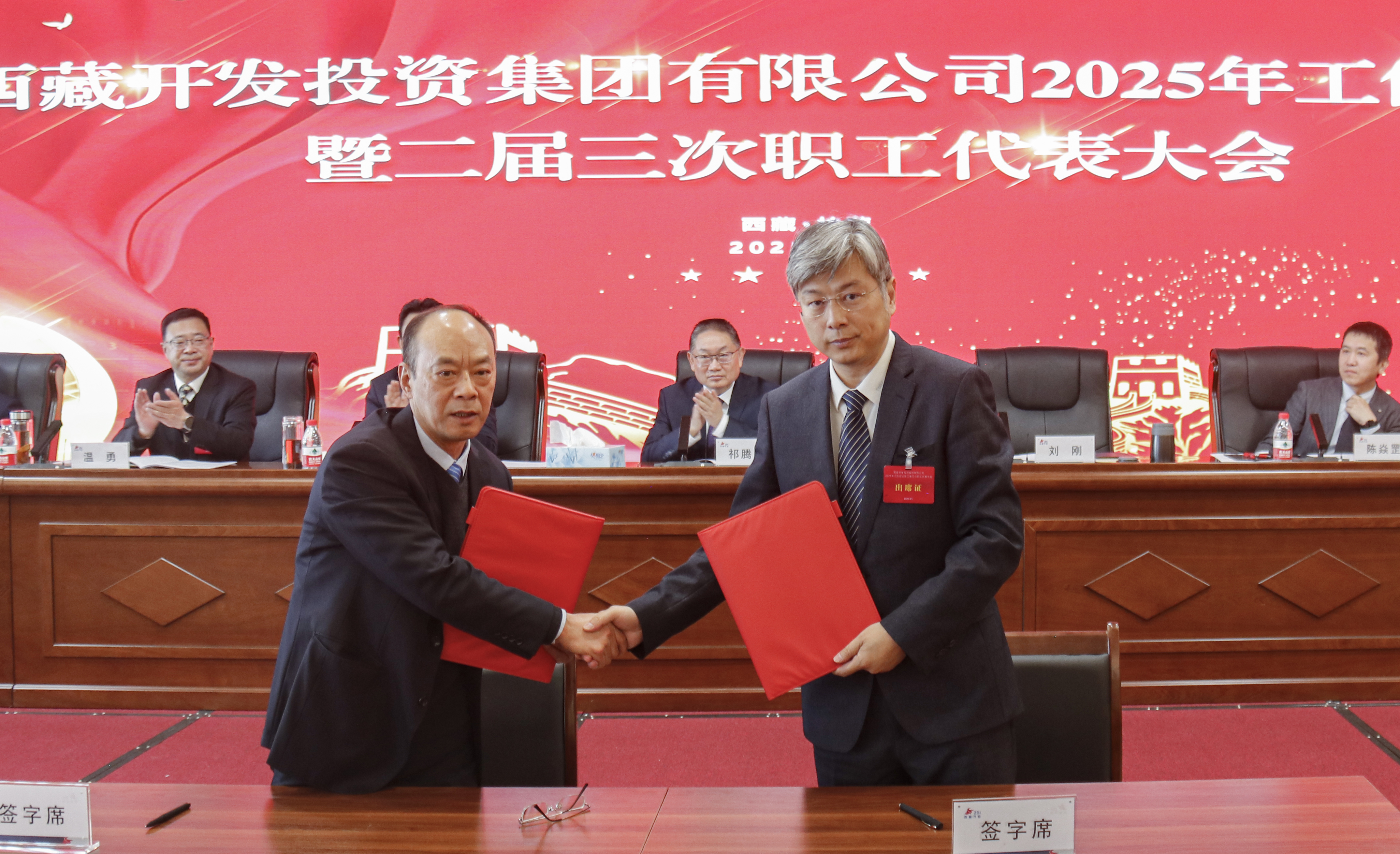 會上,集團(tuán)管理方首席代表劉剛與集團(tuán)職工方首席代表羅布次仁簽訂了《集體合同》及附屬專項(xiàng)集體合同。并代表集團(tuán)與各部門、各單位代表簽訂了今年的目標(biāo)責(zé)任書。