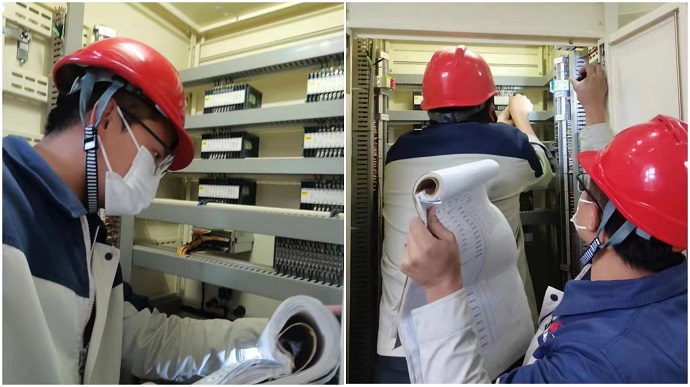 運(yùn)維主管帶領(lǐng)休息的運(yùn)維人員開(kāi)展對(duì)水輪發(fā)電機(jī)一次調(diào)頻、PSS、繼電保護(hù)裝置、穩(wěn)控裝置、振蕩解列裝置、調(diào)度自動(dòng)化裝置、通訊裝置參數(shù)和定值核對(duì),現(xiàn)場(chǎng)壓板投入及方式投退核對(duì),確保藏中電網(wǎng)異步聯(lián)網(wǎng)期間嘎堆水電廠孤網(wǎng)安全穩(wěn)定運(yùn)行。