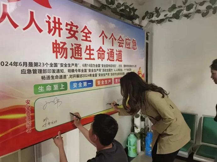 會議以《深入學習貫徹習近平關于應急管理的重要論述》為重點開展集中宣講和專題研討,宣貫了《西藏自治區(qū)安全生產(chǎn)條例》等相關文件精神,觀看了“安全生產(chǎn)月”主題宣傳片、《安全生產(chǎn) 責任在肩》警示教育片,切實提升干部職工安全責任意識和應急避險能力。會議結束后,舉行了主題展板簽名儀式,動員全體員工履職擔當,自覺把安全生產(chǎn)工作記在心上、抓在手上、扛在肩上、落在實處,與會人員在主題展板前簽字承諾。