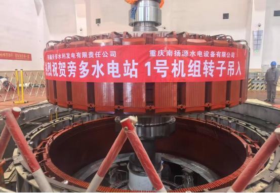 4月29日18:16,隨著現(xiàn)場指揮一聲令下,旁多水電站1號(hào)機(jī)組A級(jí)檢修現(xiàn)場,重達(dá)186噸的轉(zhuǎn)子在大型起重設(shè)備的牽引下,緩緩上升并平穩(wěn)地落入指定位置,標(biāo)志著1號(hào)機(jī)組A級(jí)檢修全面進(jìn)入回裝階段。
