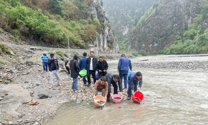 在放流活動現(xiàn)場,共投放拉薩裸裂尻、異齒裂腹魚各三千余尾,將有效補充流域野生魚類資源,對改善水生生物種群、維系易貢藏布流域生態(tài)鏈完整具有重要意義。