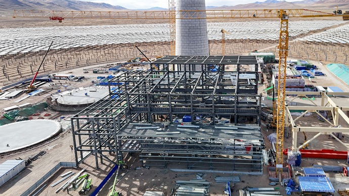 安多土碩光熱項目發(fā)電廠房建設(shè)現(xiàn)場。