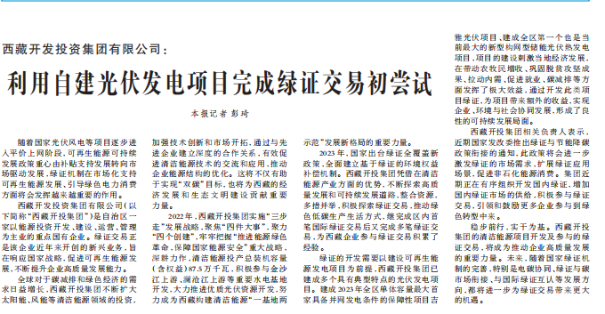 西藏日報、新浪財經(jīng)等媒體報道利用自建光伏發(fā)電項(xiàng)目完成綠證交易初嘗試