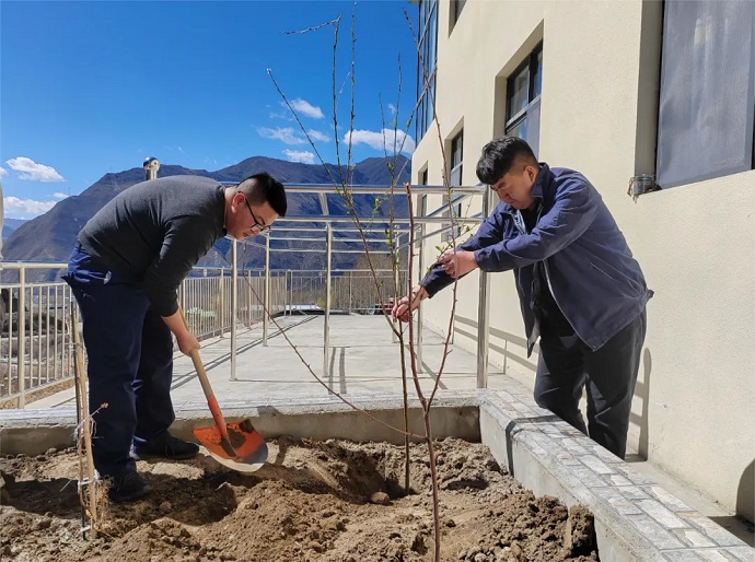 4月3日,嘎堆水電公司黨支部組織黨員干部職工開(kāi)展“引領(lǐng)綠色行動(dòng),共筑生態(tài)家園”主題種植活動(dòng)。