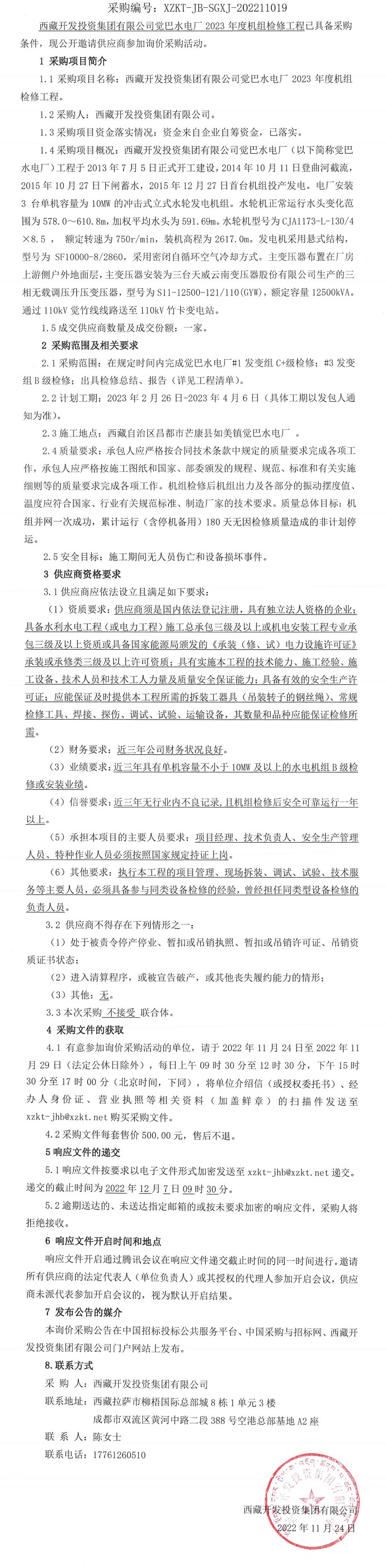 西藏開發(fā)投資集團(tuán)有限公司覺巴水電廠2023年度