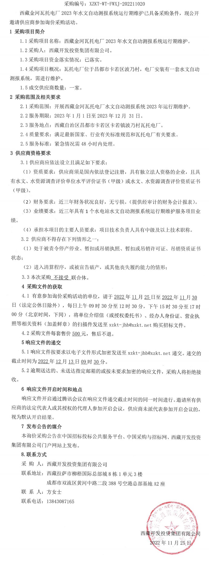 西藏金河瓦托電廠2023年水文自動測報系統(tǒng)運行期