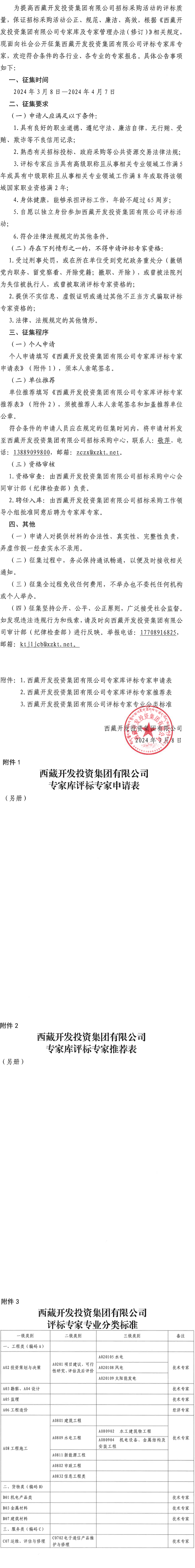 西藏開(kāi)發(fā)投資集團(tuán)有限公司評(píng)標(biāo)專(zhuān)家?guī)鞂?zhuān)家征集公告