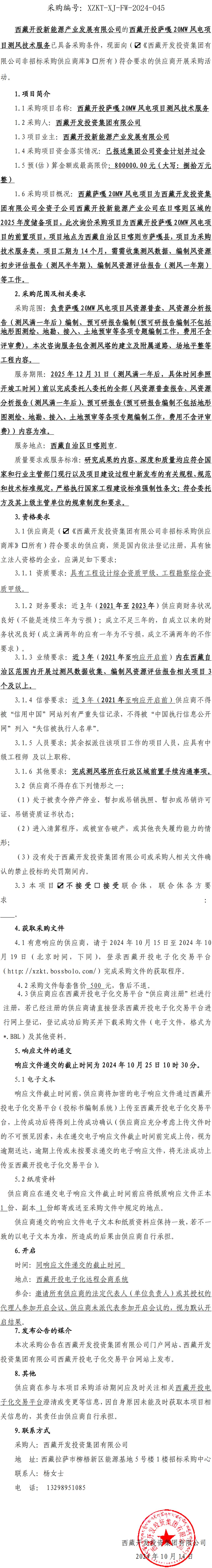 西藏開投薩嘎 20MW 風(fēng)電項(xiàng)目測風(fēng)技術(shù)服務(wù)詢價(jià)采購公告