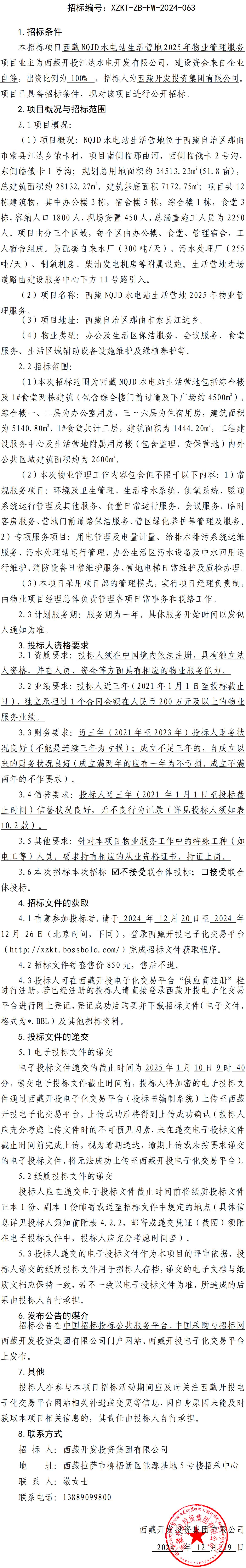 西藏NQJD水電站生活營(yíng)地 2025 年物業(yè)管理服務(wù)招標(biāo)公告