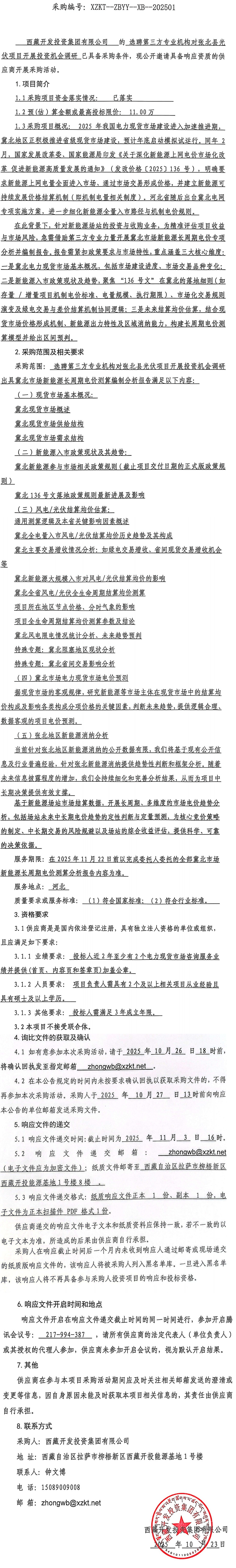 選聘第三方專業(yè)機構(gòu)對張北縣光伏項目開展投資機會調(diào)研詢比采購公告