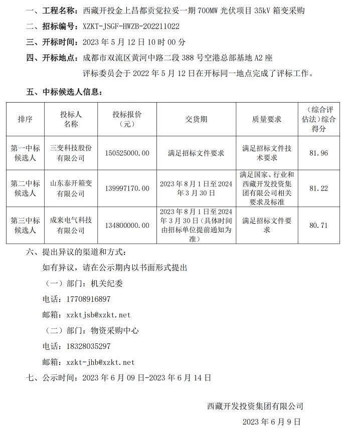 中標(biāo)候選人公示